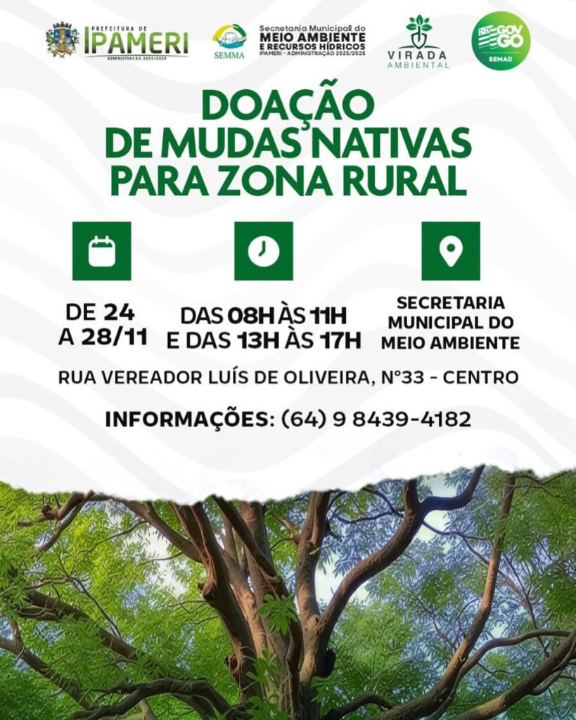 A Prefeitura de Ipameri, por meio da Secretaria Municipal de Meio Ambiente (SEMMA), deu início à Virada Ambiental 2025, iniciativa estadual que mobiliza municípios goianos para o plantio de espécies nativas e a recuperação de áreas degradadas. A ação acontece em parceria com o Governo de Goiás e tem como foco principal o fortalecimento da biodiversidade do Cerrado.