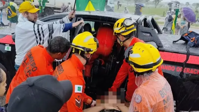 Manifestantes pró Bolsonaro ficaram feridos e precisaram ser levados a hospitais públicos de Brasília após serem atingidos pela descarga elétrica de um raio durante um temporal no Eixo Monumental. O caso aconteceu na tarde deste domingo (25).