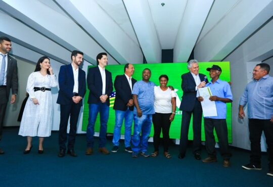Em evento no Palácio Pedro Ludovico Teixeira, dezenas de famílias da região receberam títulos definitivos de domínio de terras e outorgas de uso de água para produção de frutas